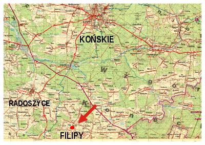 Złoże „Filipy I” położona jest na styku gmin Radoszyce i Mniów, na terenie gruntów wsi Pałęgi i Filipy, w województwie świętokrzyskim.